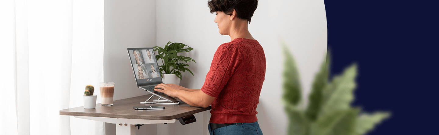 When switching to a height adjustable desk, it’s important to take regular breaks, perform stretches throughout the day to keep your leg muscles supple and prevent fatigue, and use an anti-fatigue mat to protect your feet and joints.