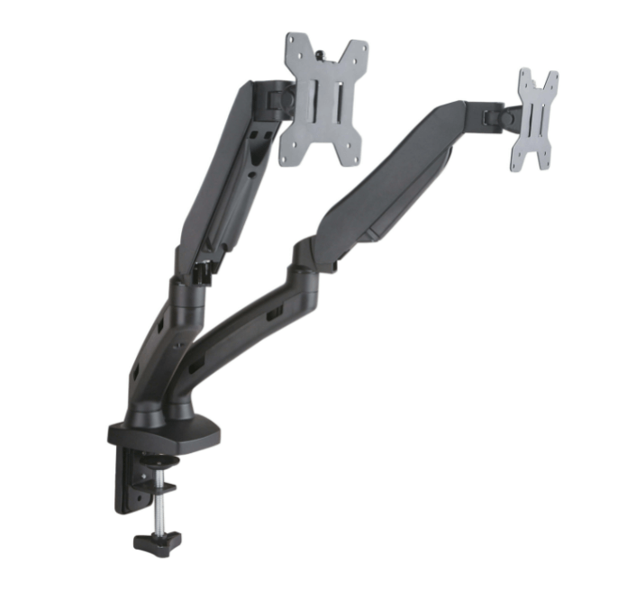 Gas spring arm, simply push/pull the monitor to your desired position and it float there like magic