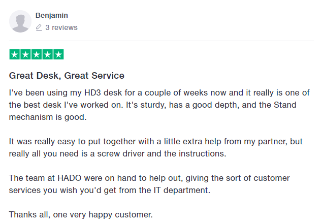 The HD3 height adjustable corner standing desk comes with a free no-quibble 10-year manufacturers guarantee meaning that you can be confident of purchasing a top quality world class product.