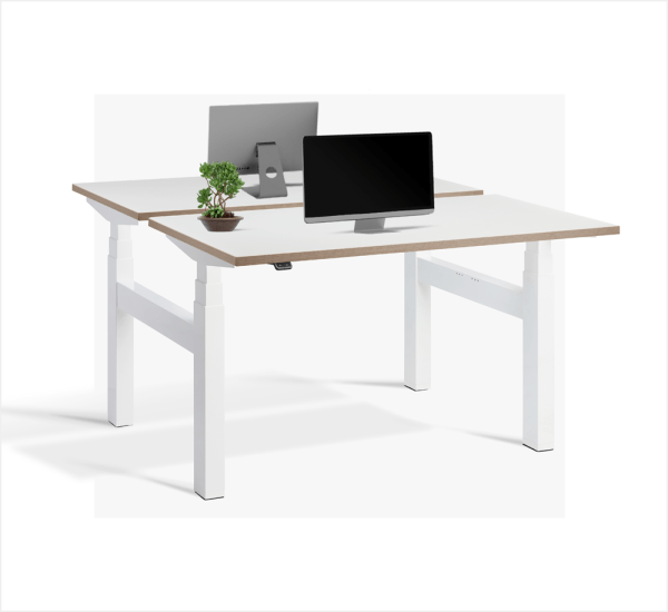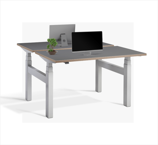 The HD4 height adjustable dual user electric standing desk allows persons to work within a traditional bench system, with the facility to stand up to work at any time.